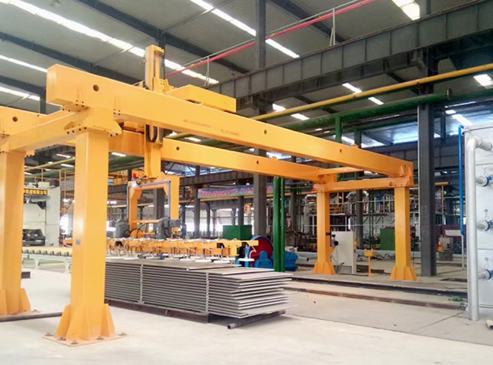 全自動桁架與各類機床及線體相結合,可以實現工件的自動抓取、上料、下料,裝卡、加工等所有的工藝過程,能夠極大的節約人工成本,提高生產效率。該機械手采用雙梁或單梁支撐形式,完成重載搬運、輕載高速搬運等不同搬運需求。該機械手具備與機床的聯機功能,完成全線的生產數據跟蹤及參數調用,實現全線自動生產。